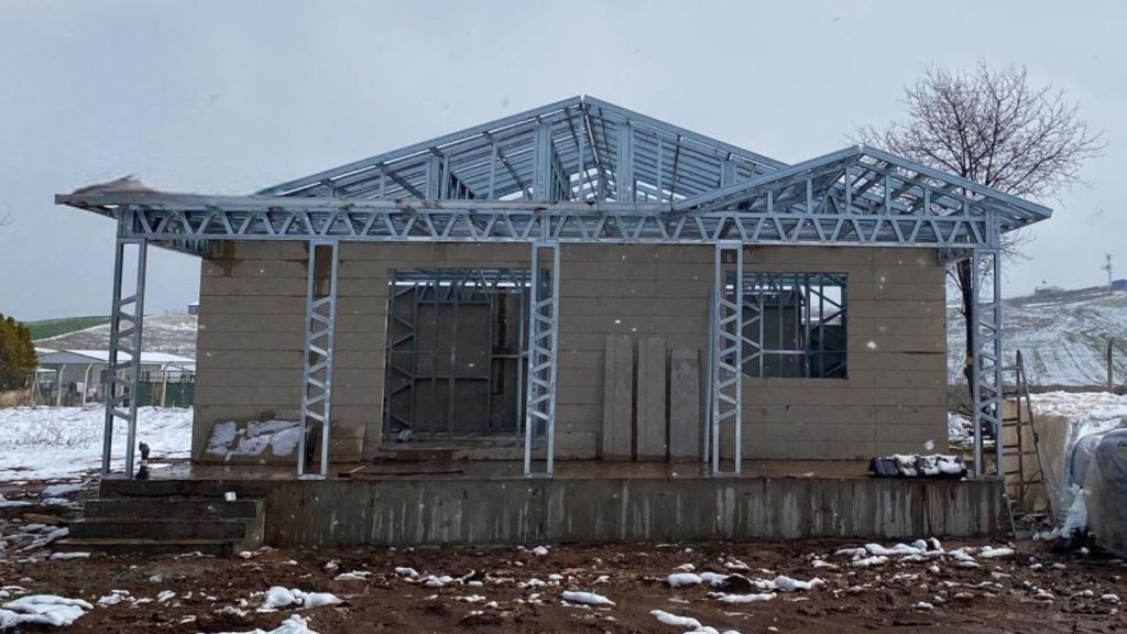 - Hafif çelik kaba kurulum (İç ve dış duvar ile çatı kaplaması)