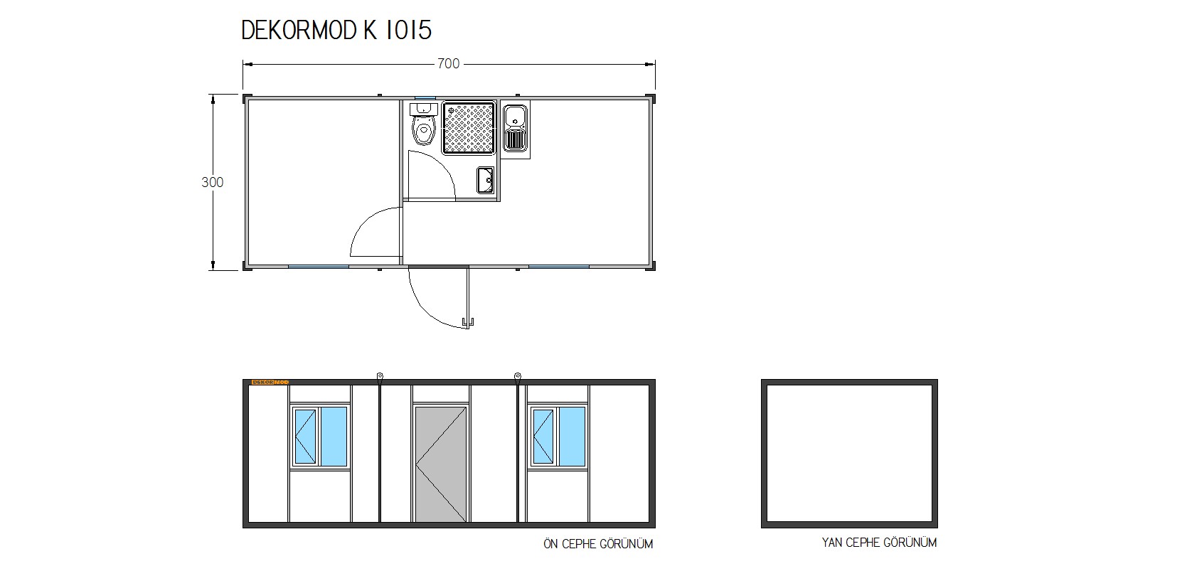 3×7 mt 2oda + wc/banyo + mutfak konteyner K1015